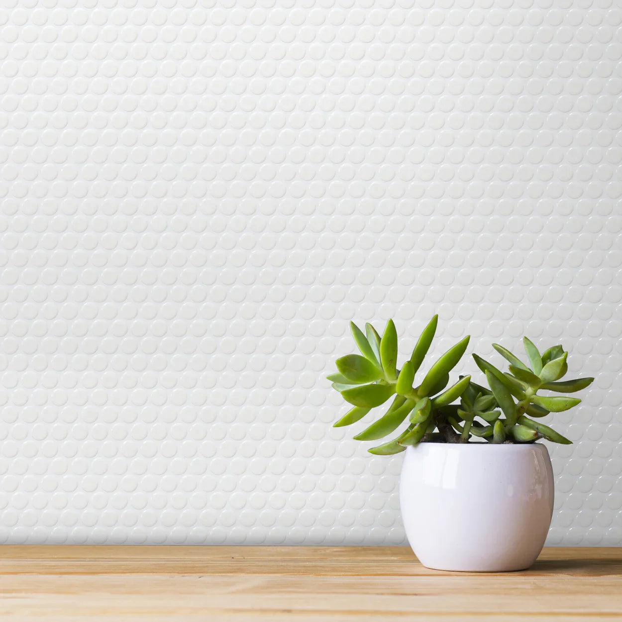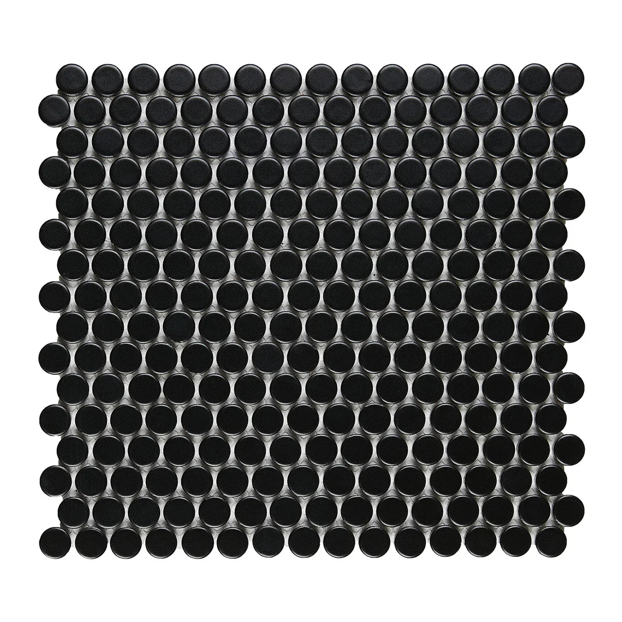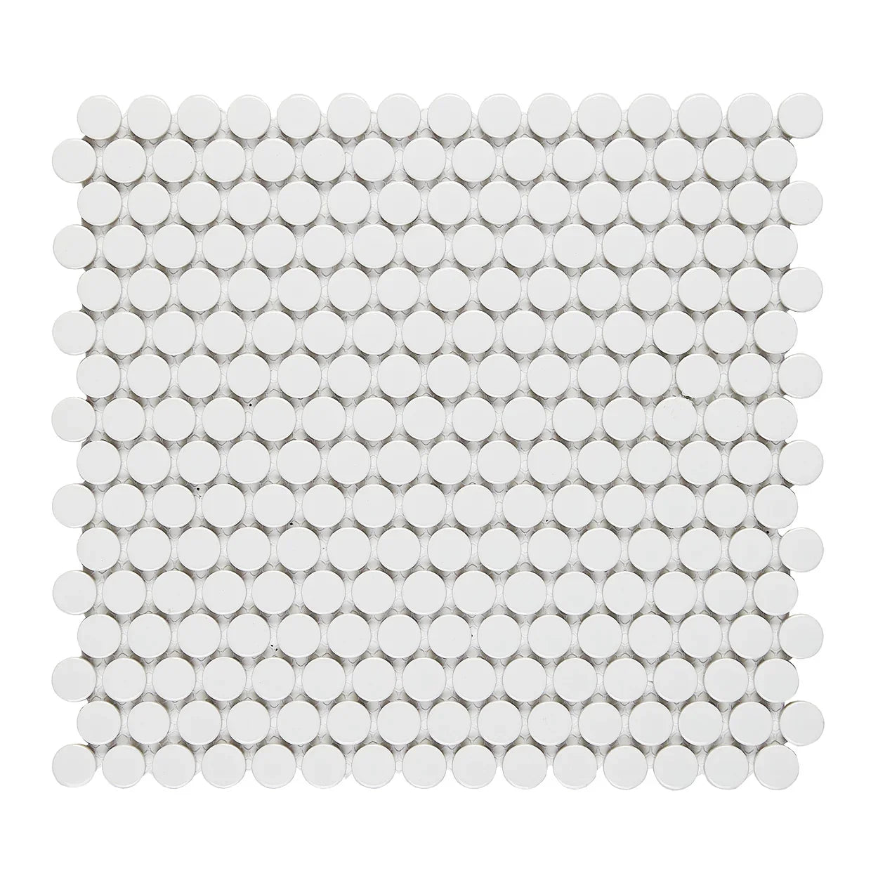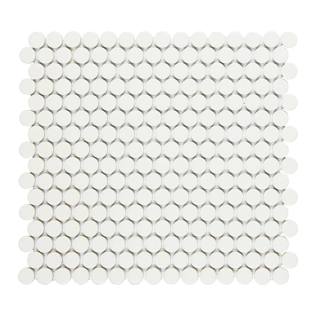 Tile Size 12.25" x 11.50" | Sq. Ft. Per Piece 1 | Sq. Ft. Per Box 1 | Pieces Per Box 1 | Weight Per Box 2 lbs. | Porcelain Tile | Finish Mosaic Penny Rounds Glossy / Matte